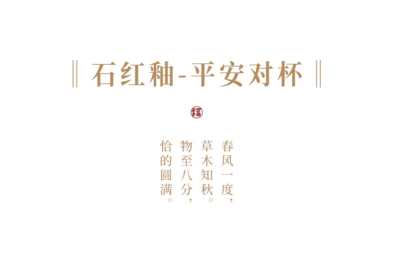 色の分類 石紅釉-平安杯 (金喜字),石紅釉-喜びカップ,紅釉-喜楽杯,紅釉-喜楽カップルカップ,石紅釉-喜びカップルカップ,石紅釉-平安カップルカップ