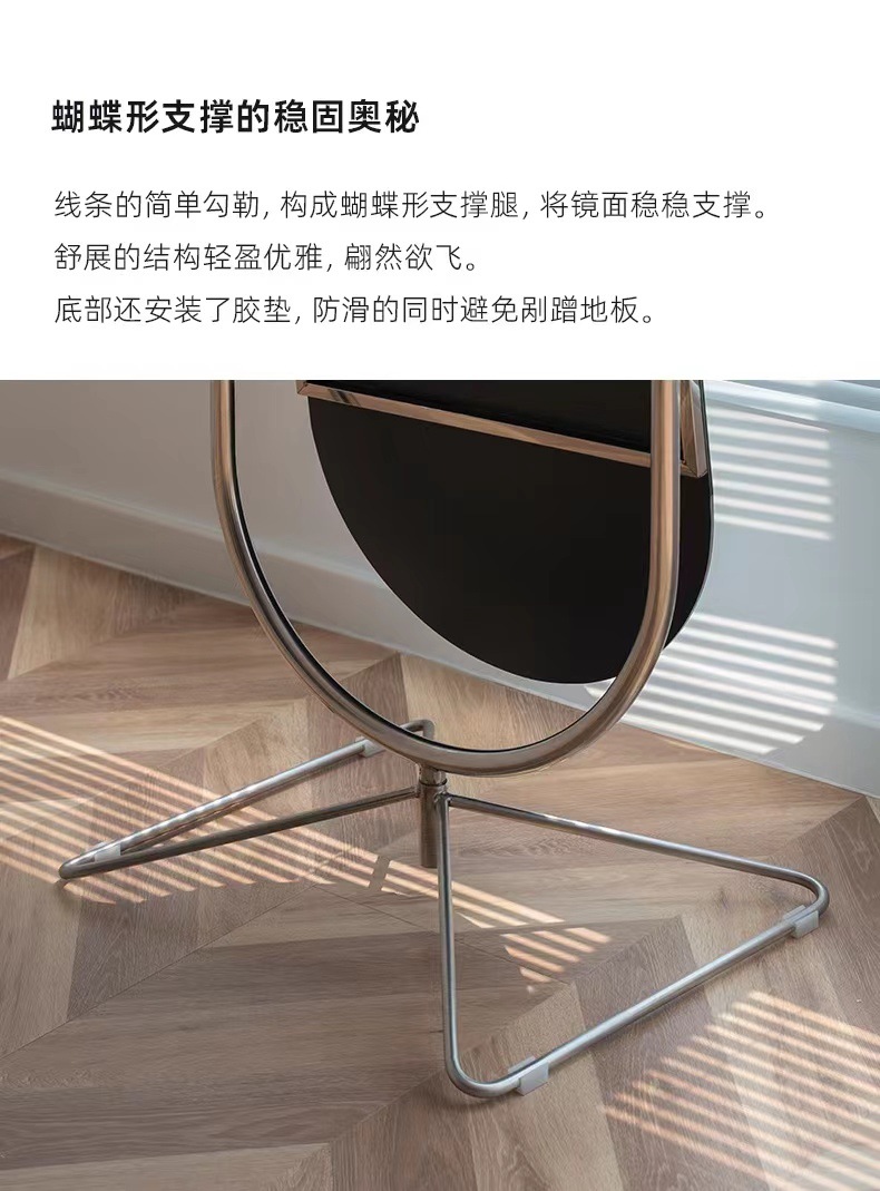 轻奢全身落地镜子网红ins中古可移动家用卧室旋转穿衣镜蝴蝶镜
