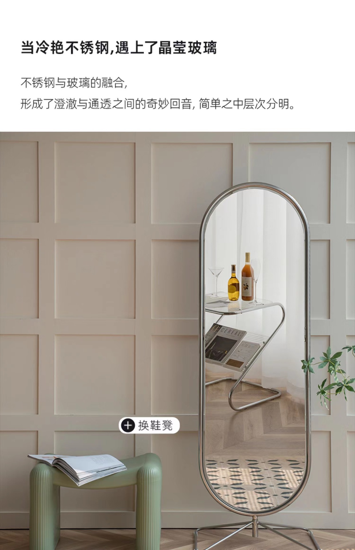 北欧全身服装鏡デザイナーのins風シンプル化粧鏡試着鏡床置き鏡半身鏡
