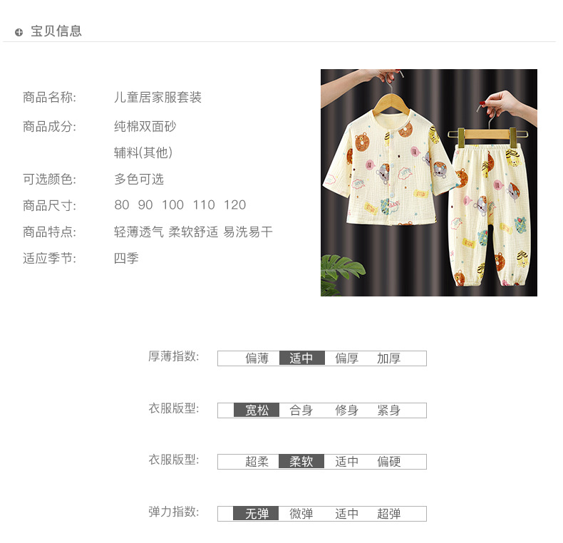 子供用パジャマ夏の薄い女の子の綿のガーゼのエアコン服のカーディガンのスーツの男の子の子供の春と秋の半袖の家の服