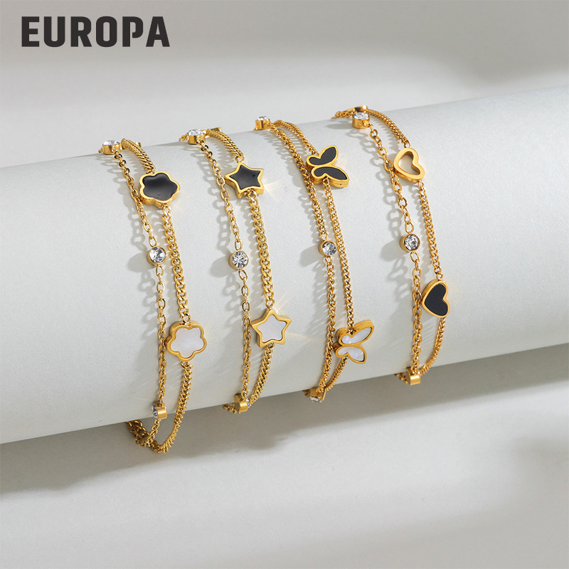 亚马逊爆款双层叠戴星星手链女高级感14k金时尚小众东莞钛钢饰品