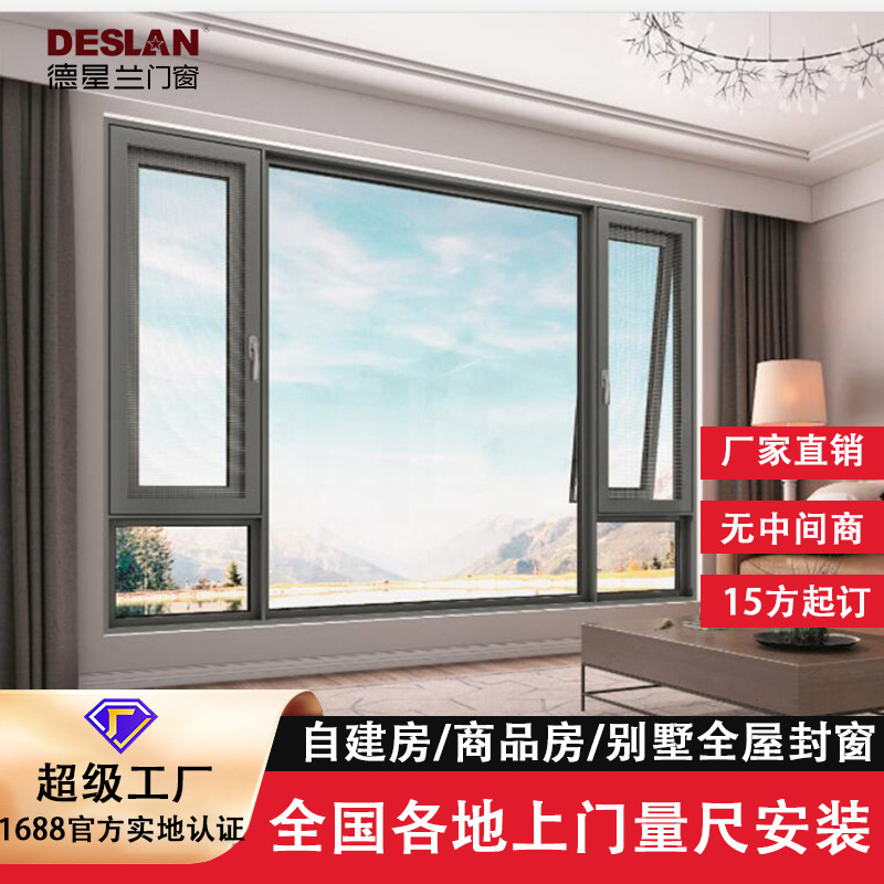 佛山门窗厂家直发小区卧室阳台铝合金简易窗断桥铝窗纱一体平开窗