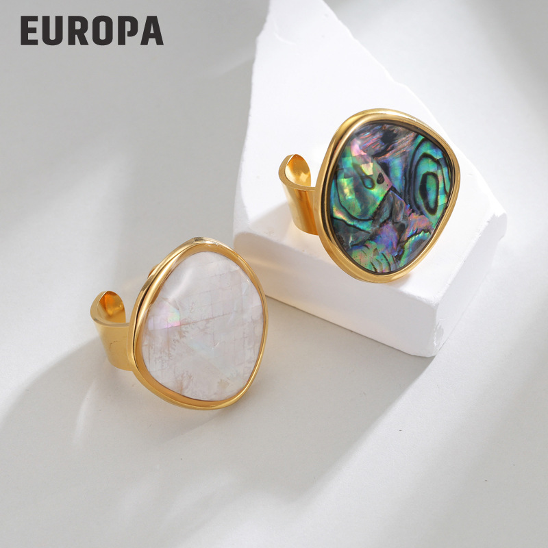 亚马逊爆款几何不规则贝母戒指18k金复古时尚开口戒指钛钢不掉色