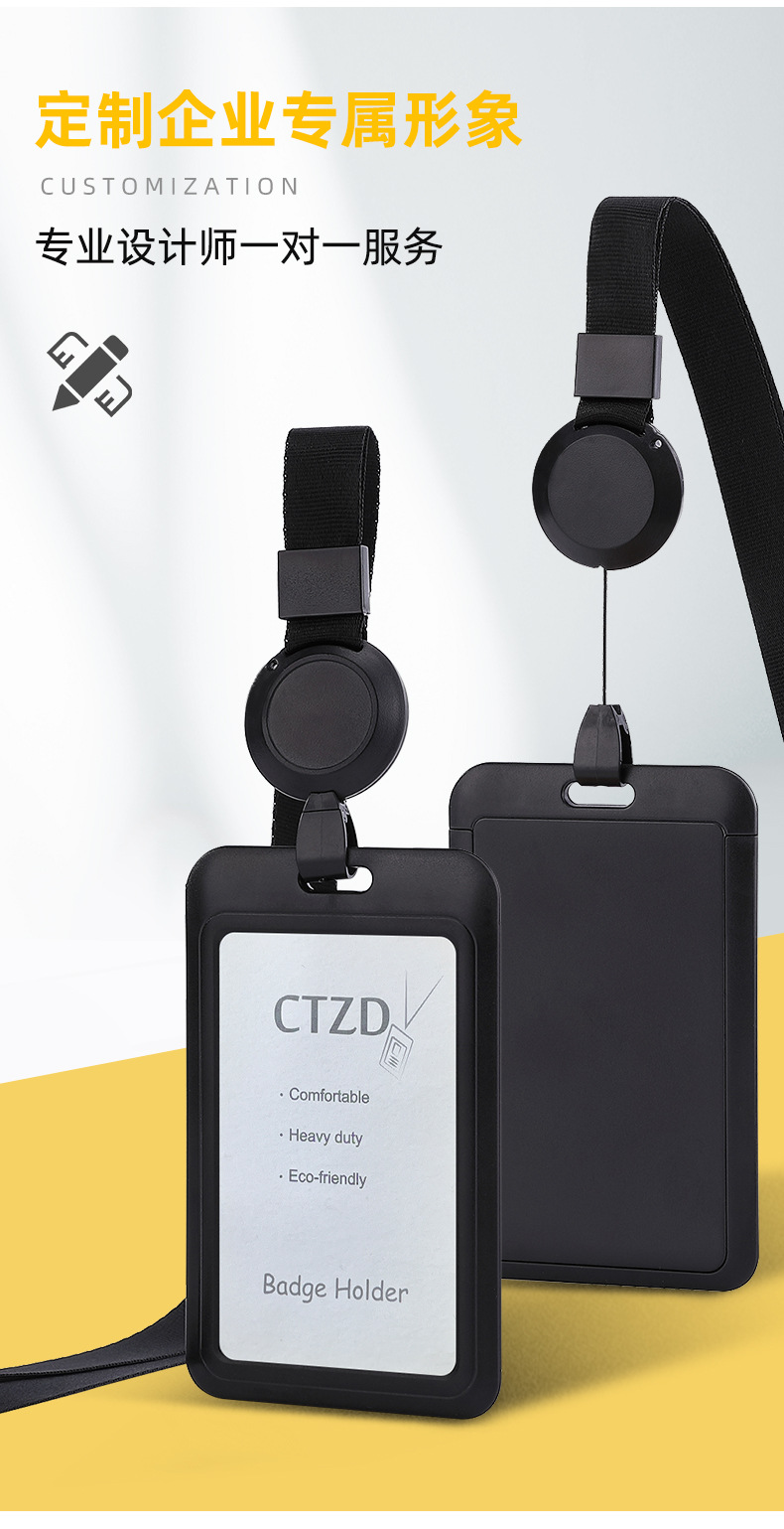 定制高档企业易拉扣胸牌工牌卡套 员工证件套办公门禁卡套带挂绳