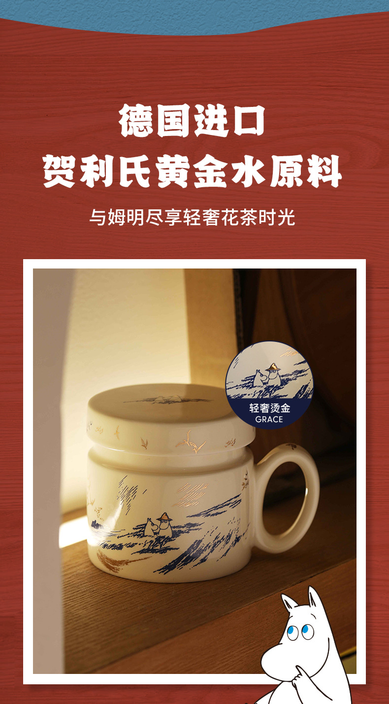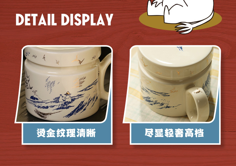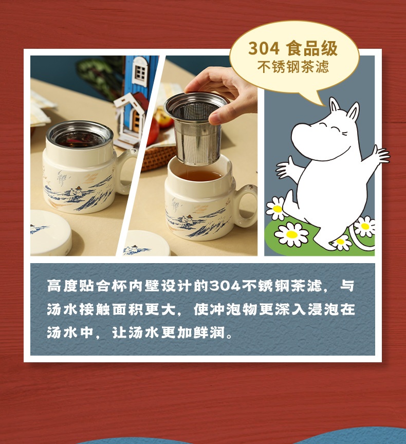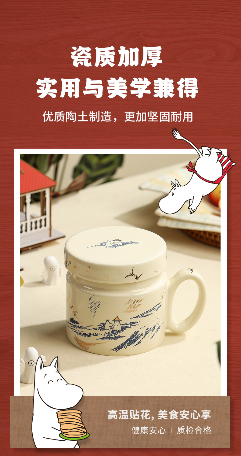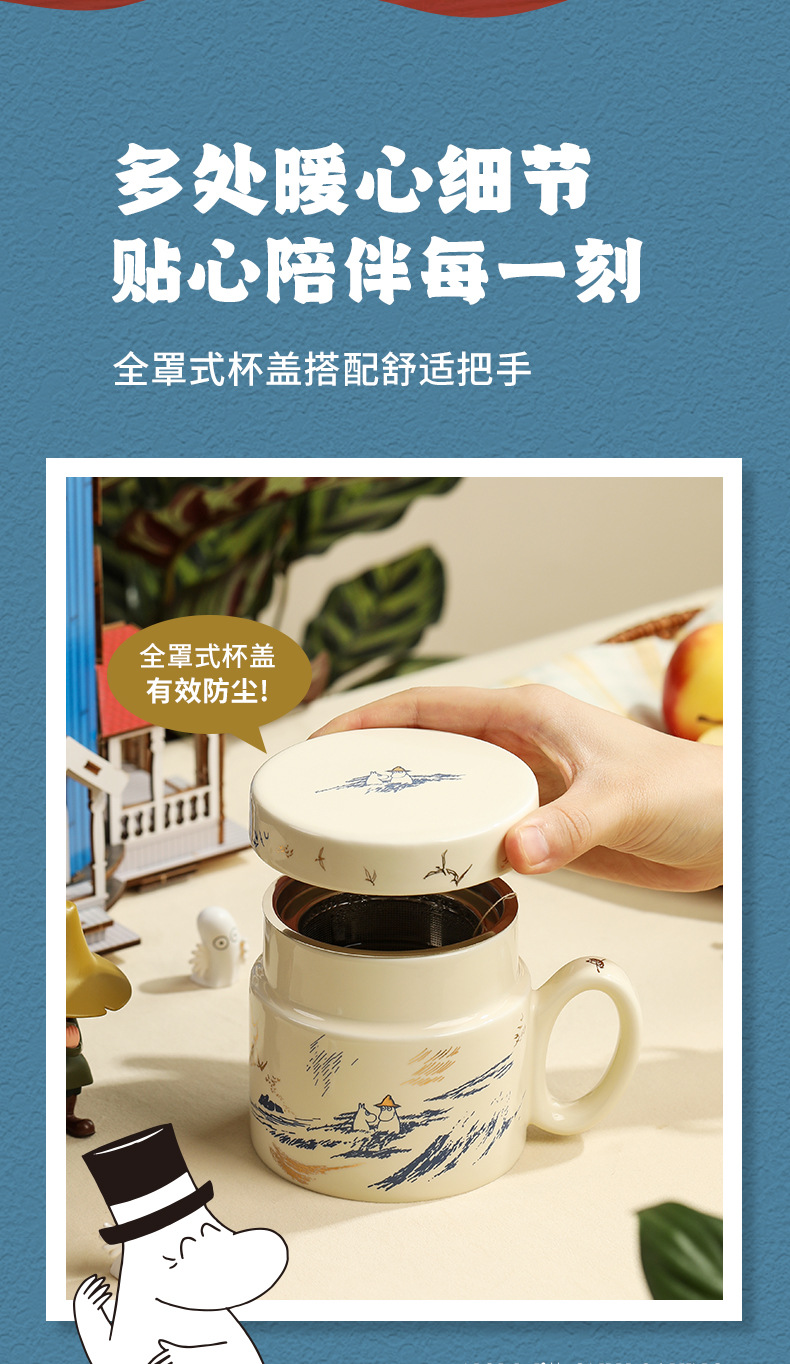 ムーミンmomin正規版授権マグカップ蓋付きセラミックカップ水杯フィルター付きティーカップ事務室