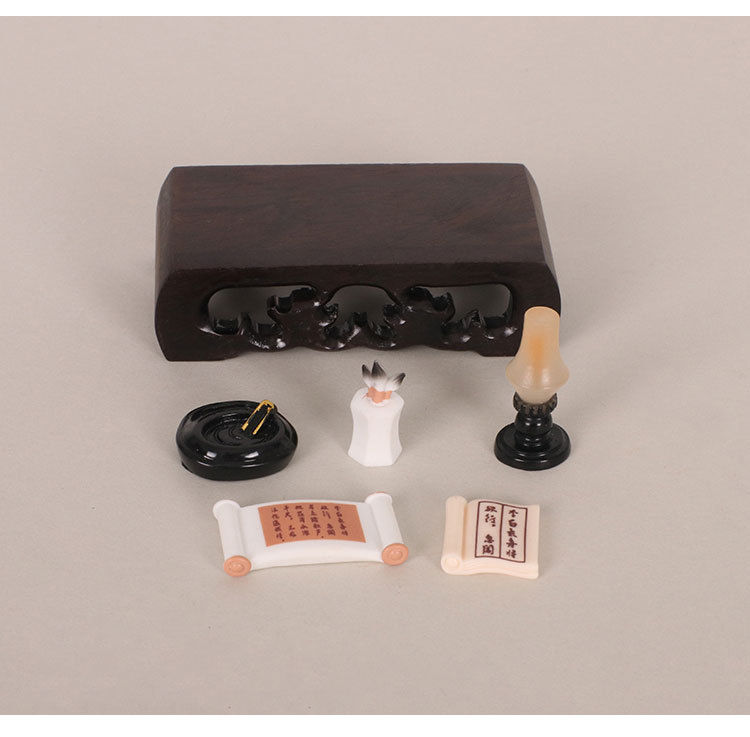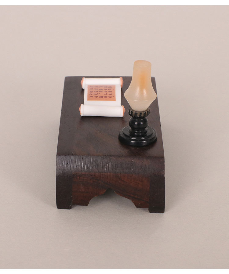 カラー 灯油ランプ1個,ロールブックを1つ展開,本1個,墨を1つ研ぐ,筆立て1個,古風テーブル1個