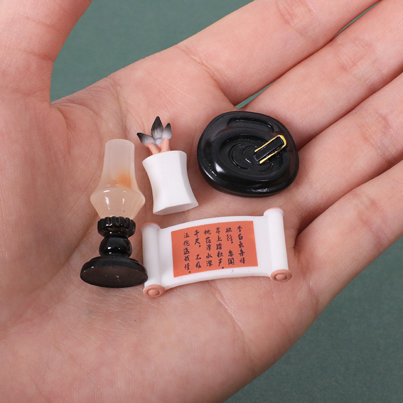 Dollhouse人形屋ミニ古風テーブル筆墨紙硯灯油ランプdiy中国風装飾品アクセサリー