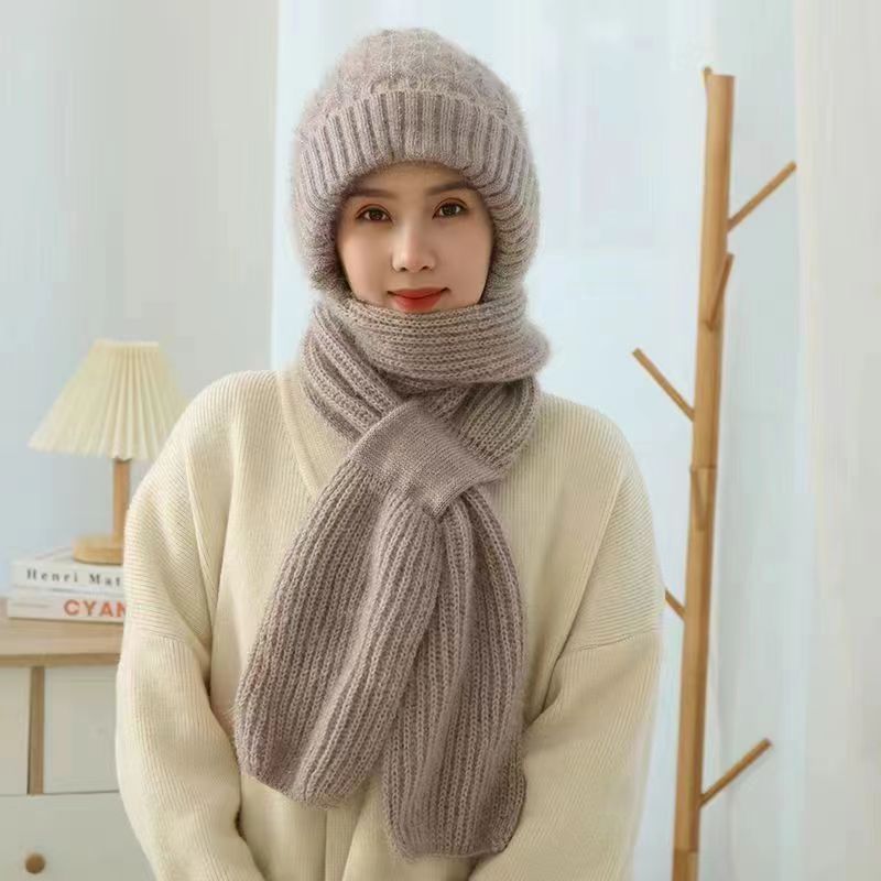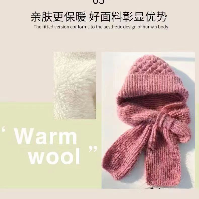 帽子围巾一体针织帽秋冬骑车防风帽外出旅行风雪帽保暖帽子批发