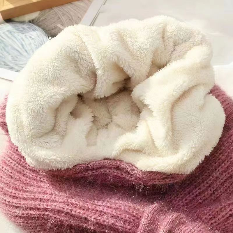 ニット帽とスカーフが一体になった2点セット、保温性と厚手の裏起毛で、冬のサイクリングや防風に最適な韓国風暖かいウール帽子