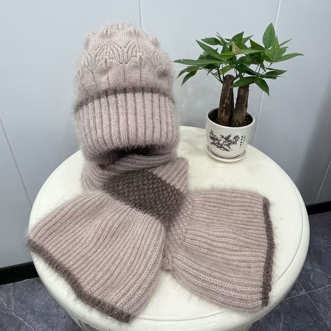 新款秋冬松鼠绒手工编织洋气百搭户外防寒防风帽子围巾连体针织帽