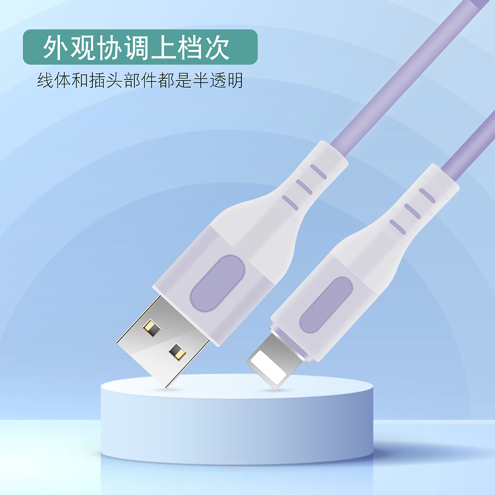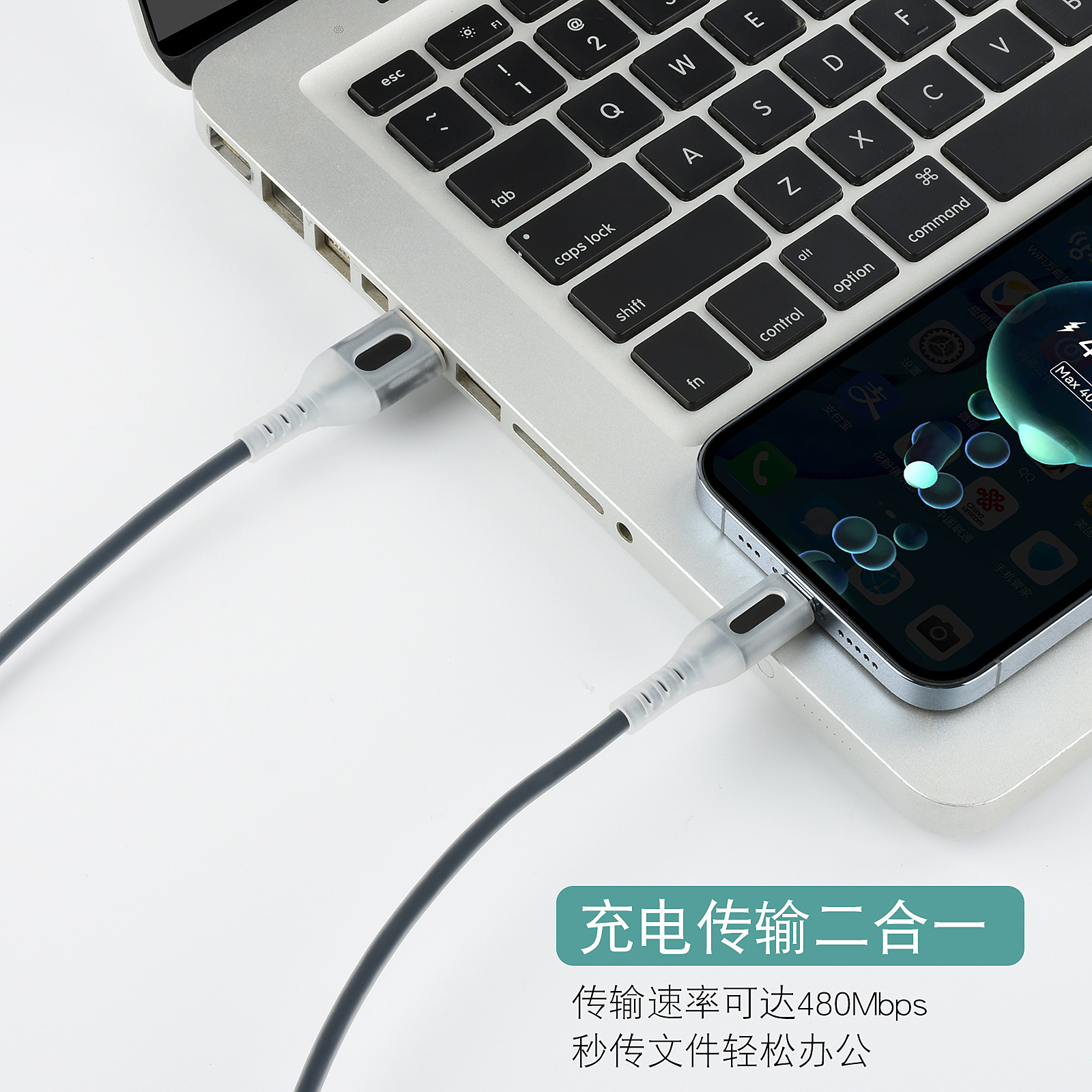 液体シリカゲルのデータ線には、ランプ付きカラーソフトゴム充電線安卓type-c発光透明pd充電線1m