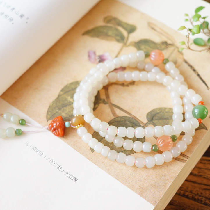 工場卸売り天然和田玉薯粉手串和田玉多輪ブレスレット女性高級感オリジナル古い手串