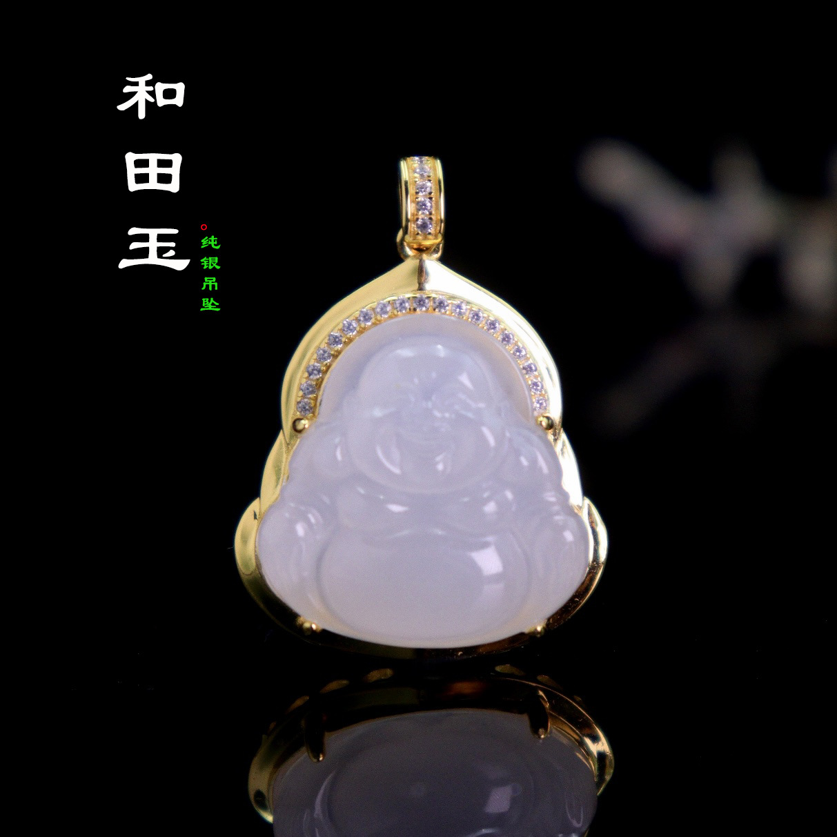【高端】天然和田玉佛公吊坠通体S925纯银镶嵌羊脂玉弥勒佛单坠