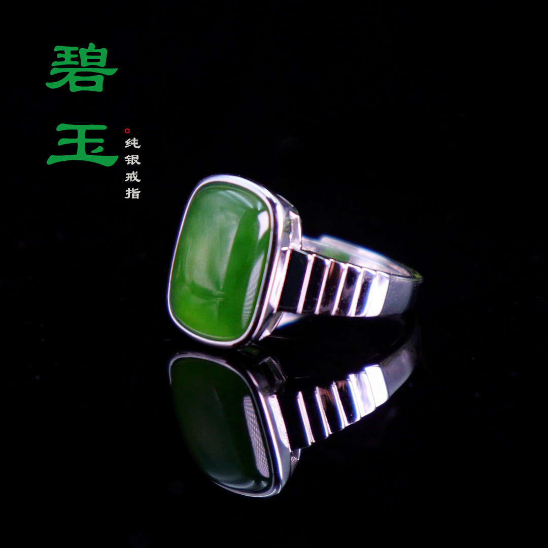 【高货】天然碧玉方糖戒指通体S925纯银镶真玉大戒面保真可出证书