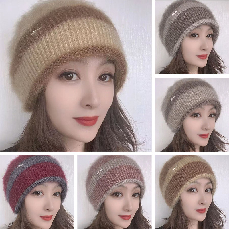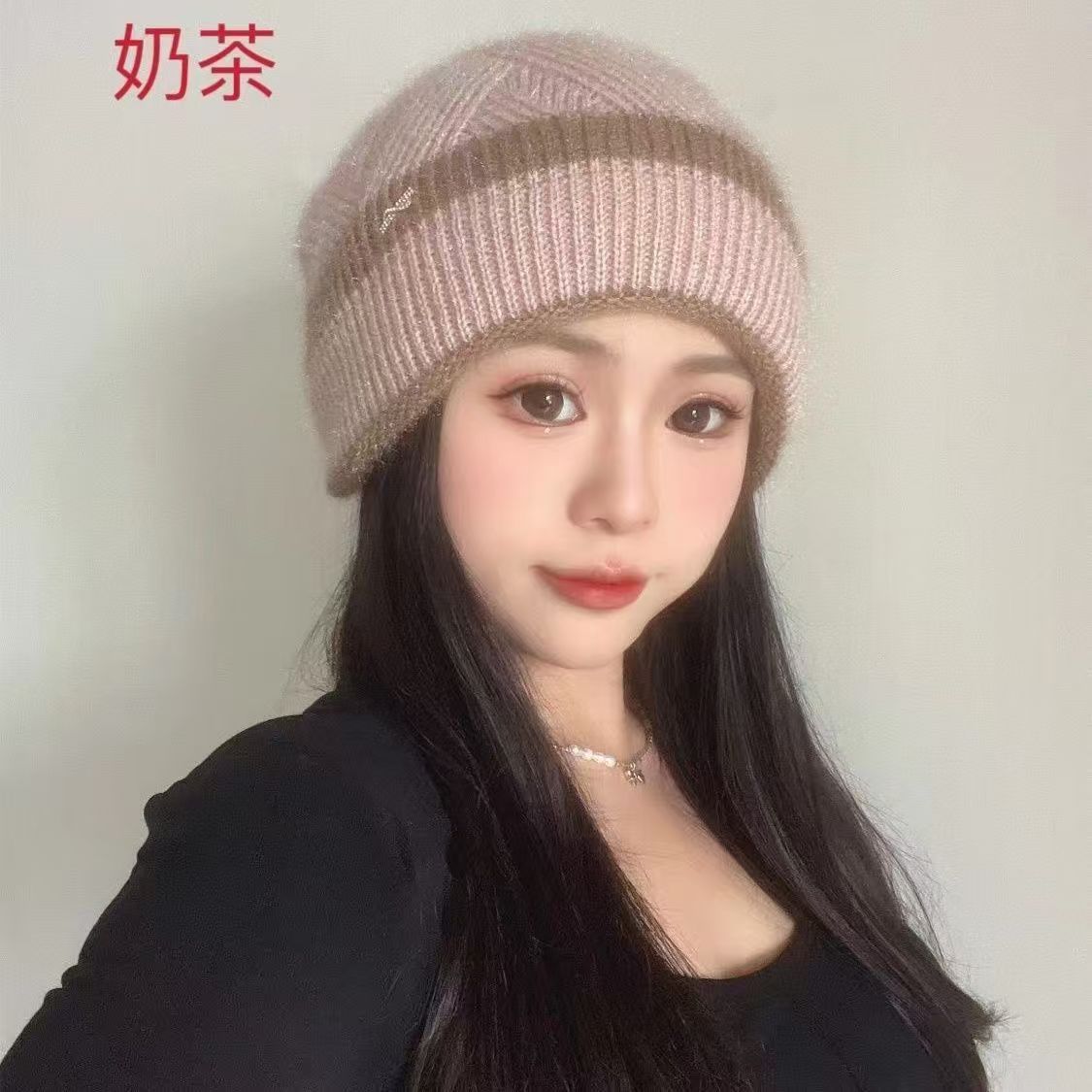 帽子女款保暖针织帽帽子秋冬女秋冬包头帽帽子秋冬撞色帽子堆堆帽