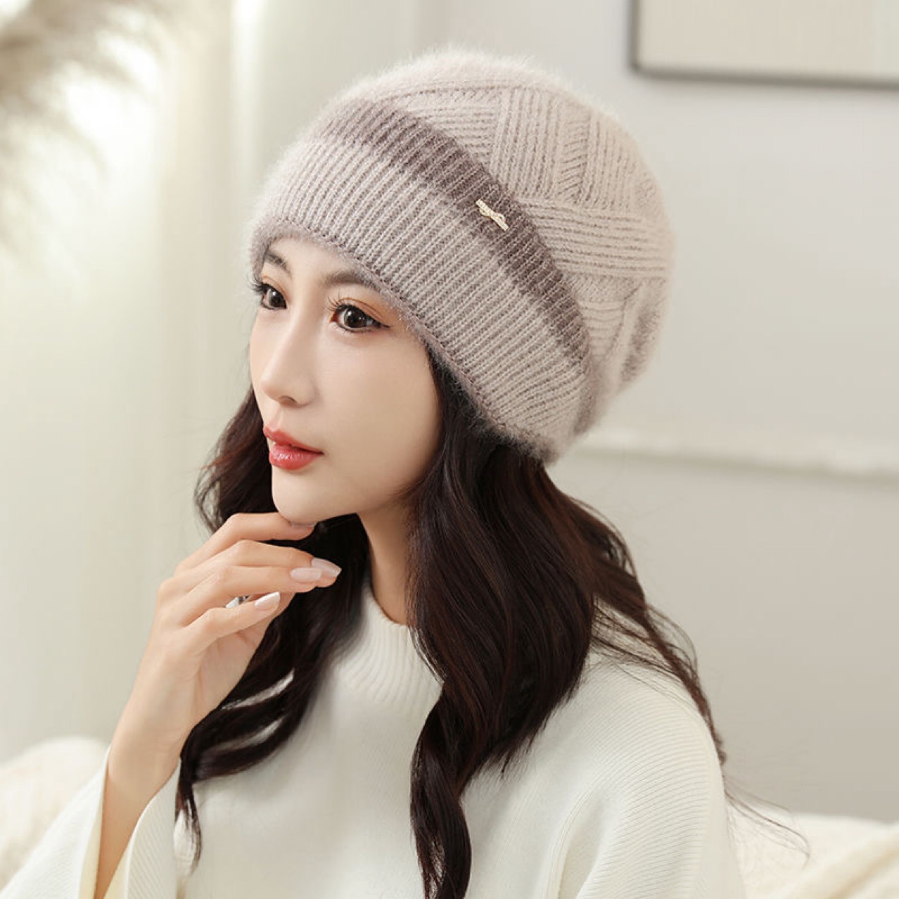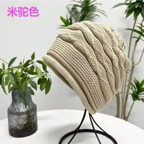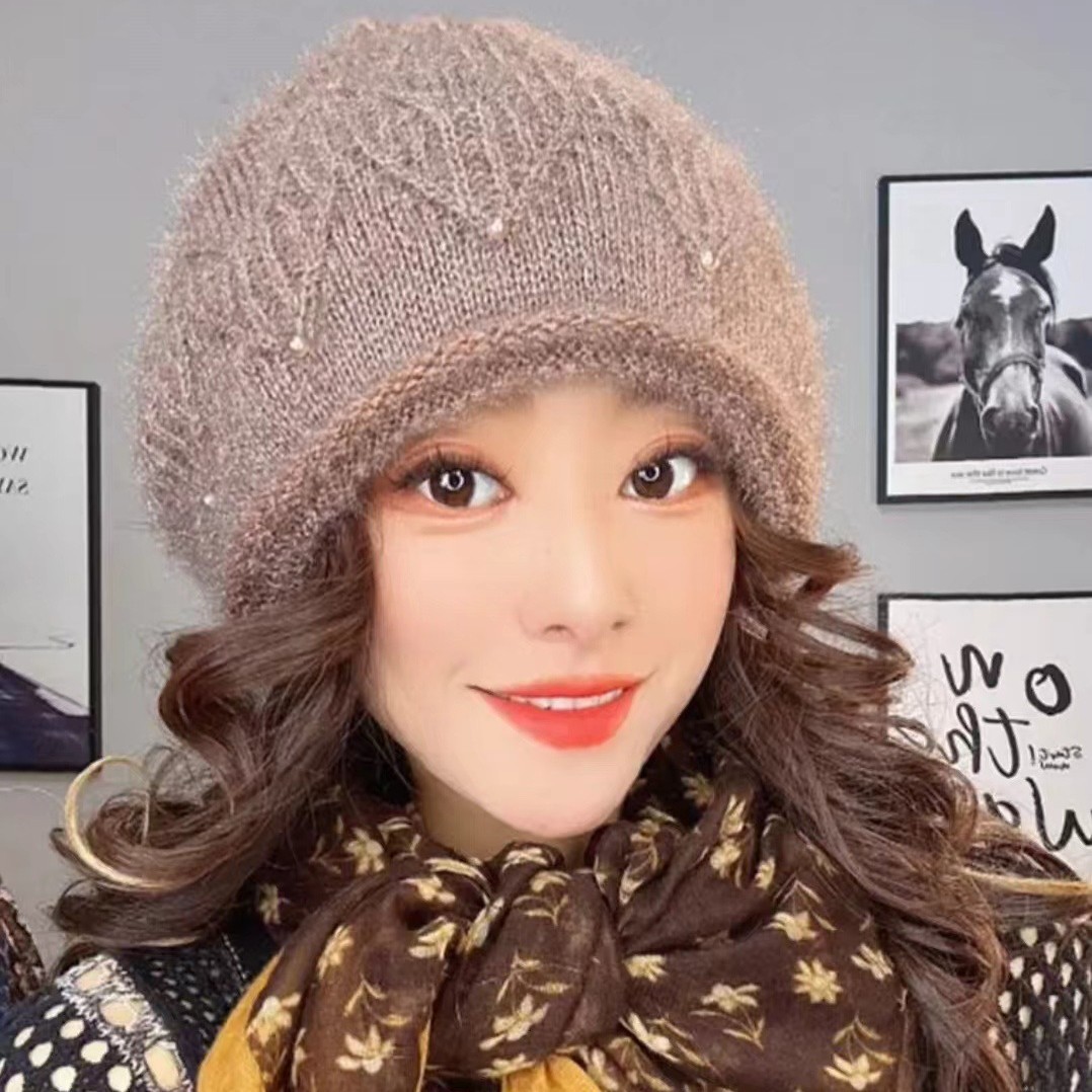 冬のファッショナブルな暖かいウールの帽子韓国の多用途二重層暖かいニット帽子秋と冬の女性の包頭プラスベルベット帽子
