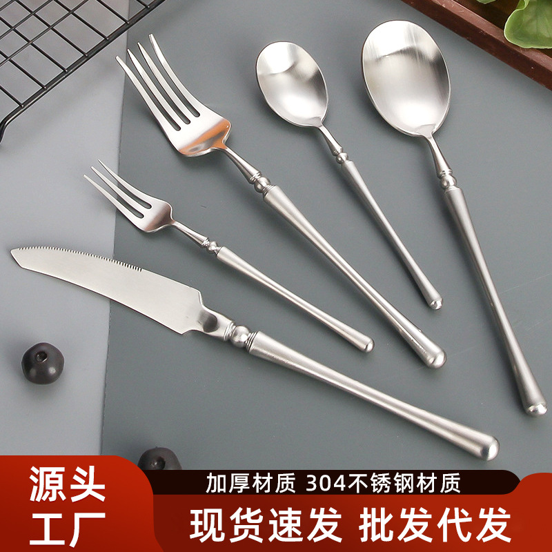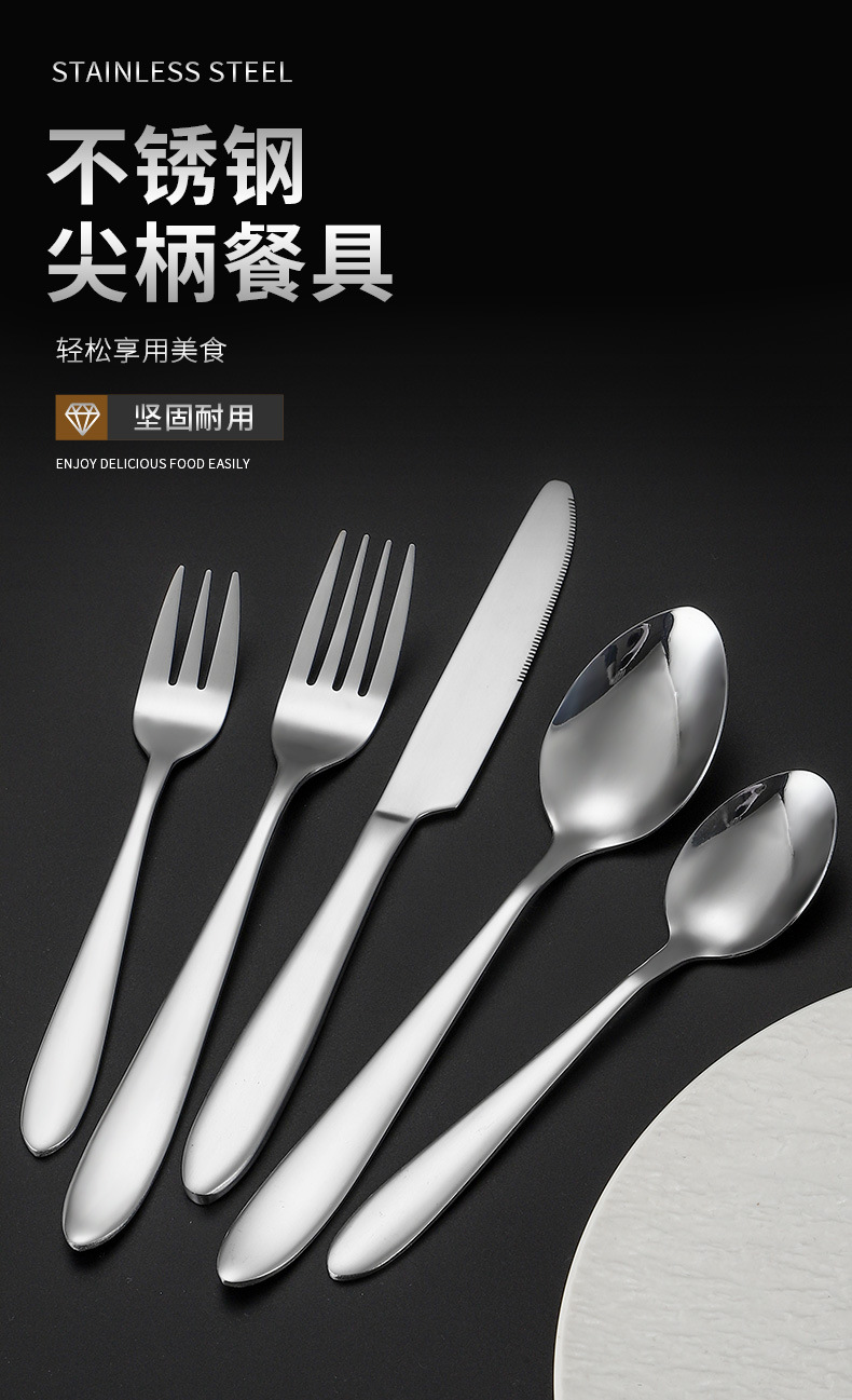 1010 ステンレス鋼食器ナイフ、フォーク、スプーン洋風ステーキナイフとフォーク家庭用肥厚尖ったスプーンラウンドスプーンホテル用品