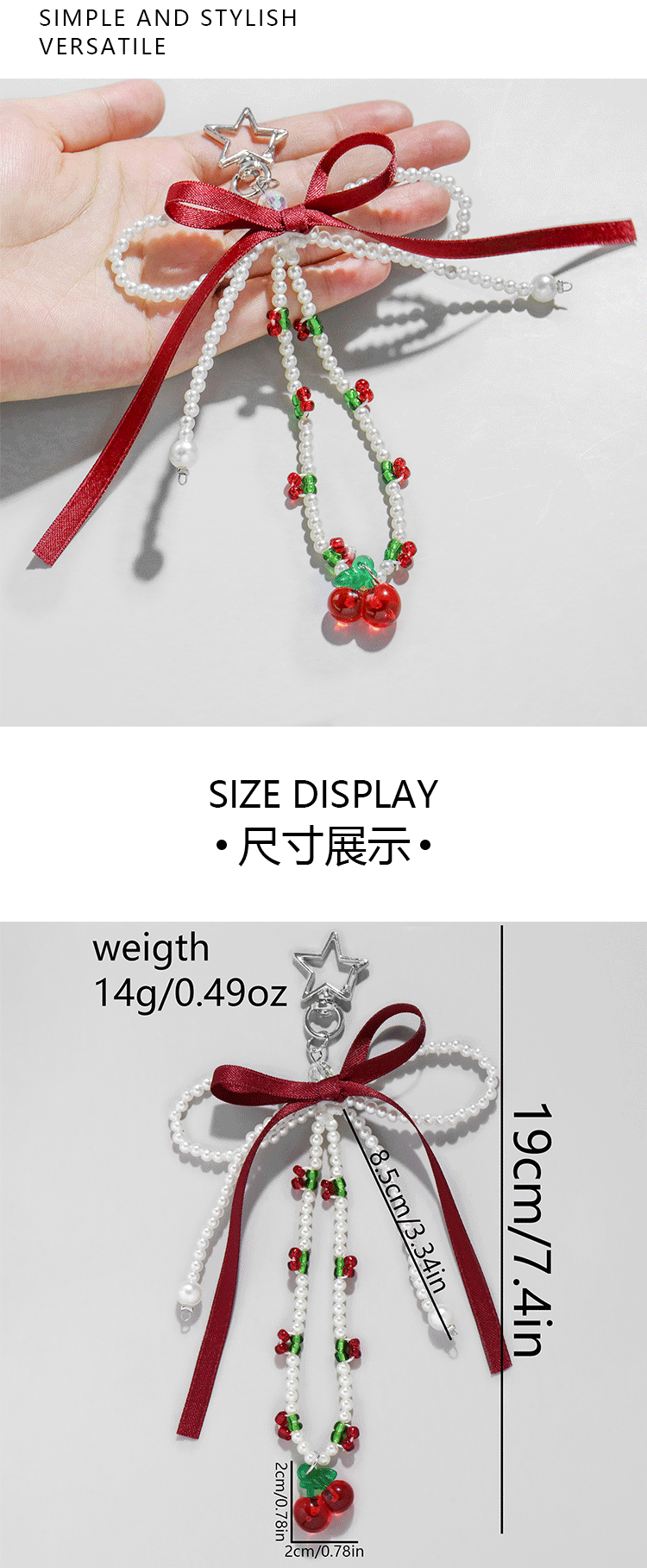 カラー バーガンディ リボン イミテーション パール リボン チェリー ビーズ キーチェーン 1 個