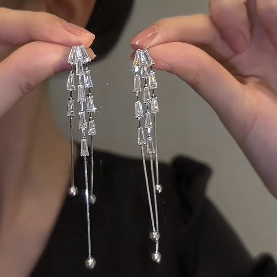 長型ジルコン流蘇イヤリング花火気質霊動イヤリング小衆デザイン高級感軽贅沢耳飾り冷淡風