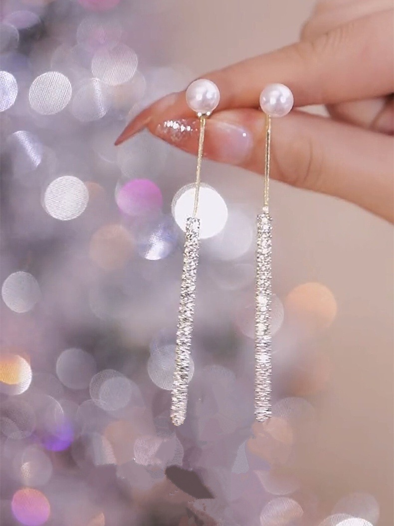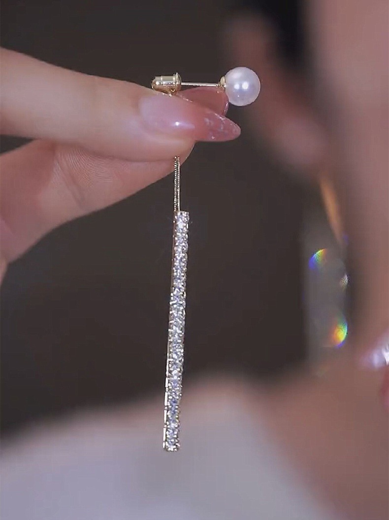 ロングストライプのダイヤモンドのフリンジイヤリングS925銀針は真珠を取り外すことができます。