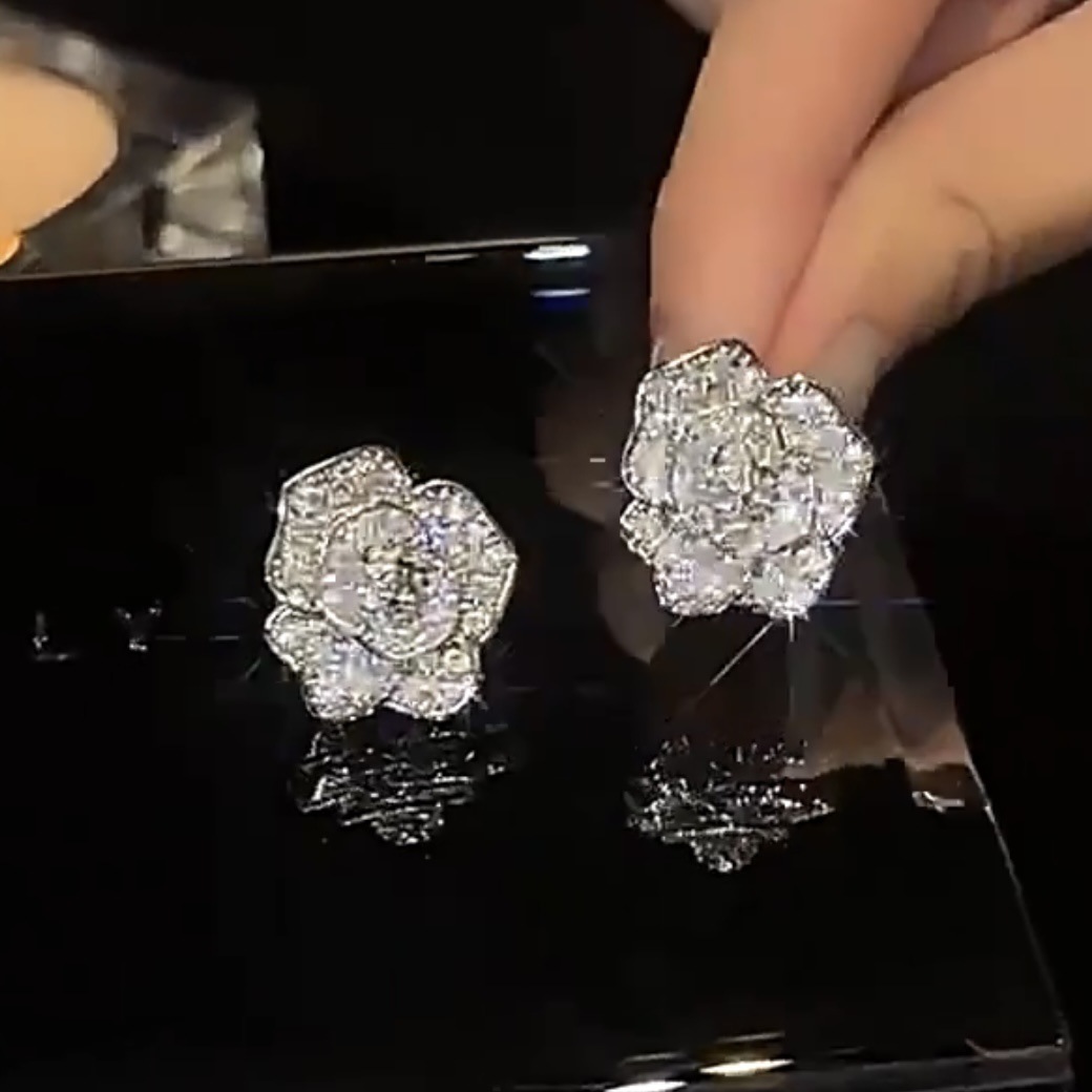 銀色の軽贅沢ジルコン雪花イヤリングs925銀耳針起爆軽贅沢耳飾り夏高級感氷菱花