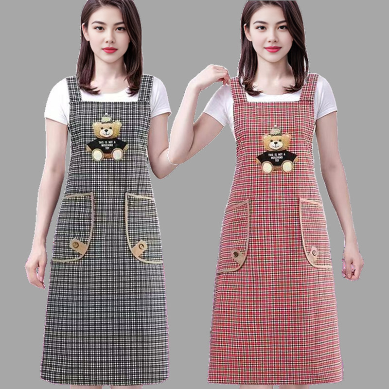 韓国版エプロン女性純綿通気性ファッションベルトウエスト防水防油綿布カバーかわいい洋風作業服