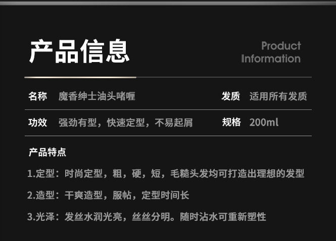 魔香ジェルメーカー直販男性バック保湿オイルヘッド造形ジェル持続型ジェル卸売り