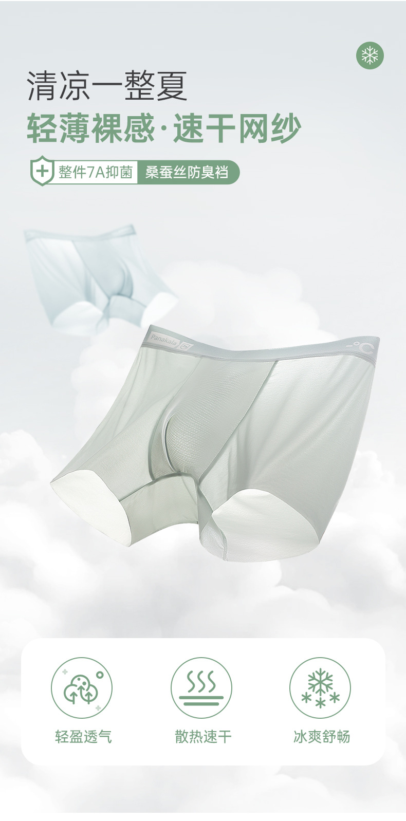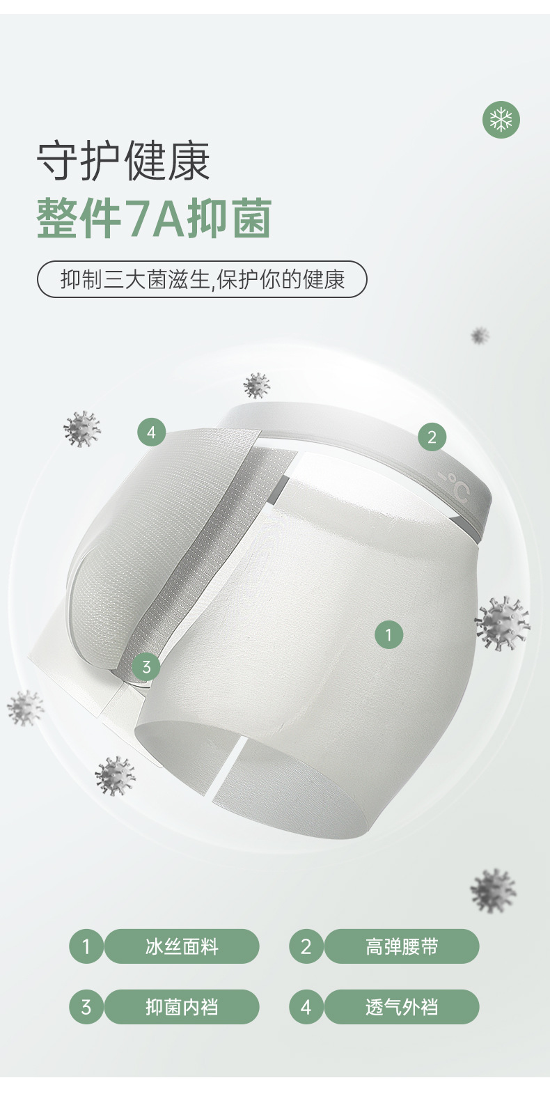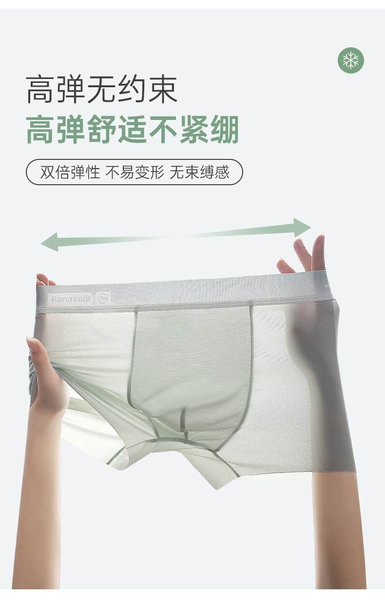 氷糸男性下着男子無痕高弾平角ズボン夏の薄い通気四角ズボン抗菌股ズボン男