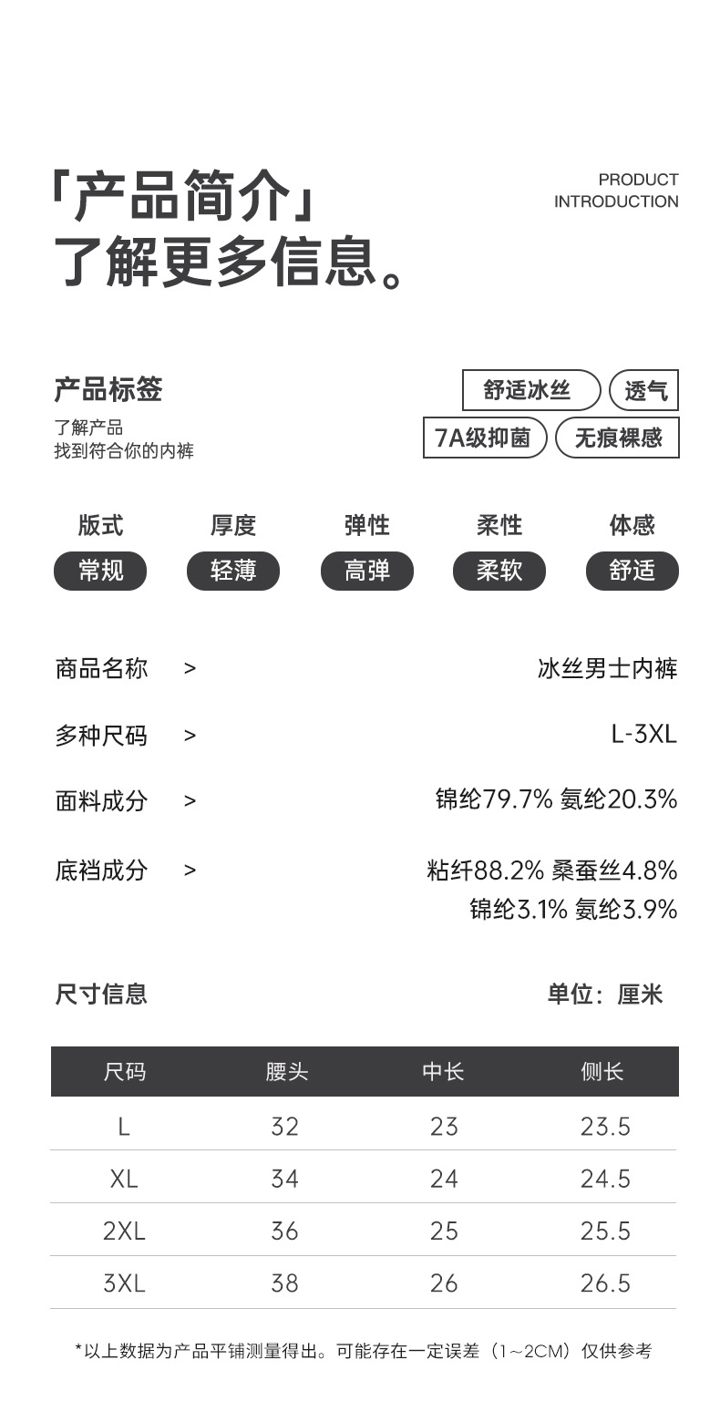 氷糸下着男性四角ズボン男性通気性の薄いタイプの無痕半ズボン運動通気性男性下着パンツ