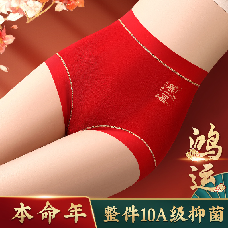 本命年女士高腰内裤马年大红色收腹纯色无痕结婚10A抑菌三角底裤