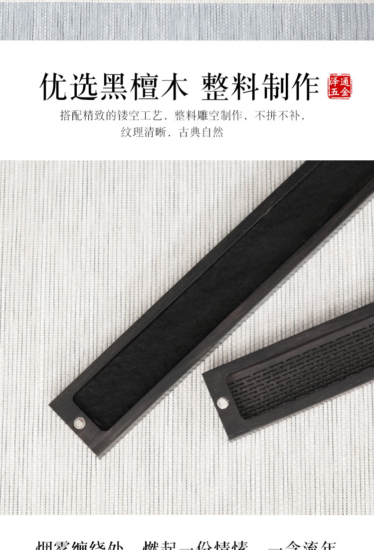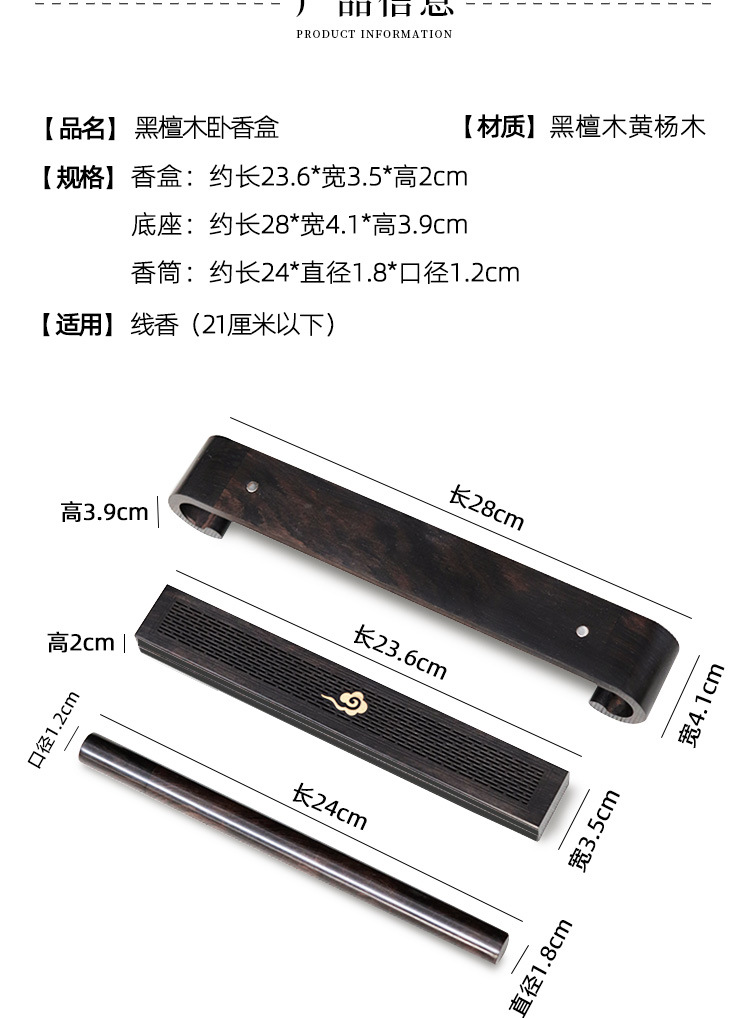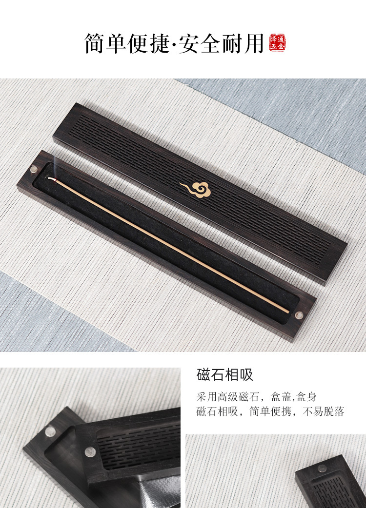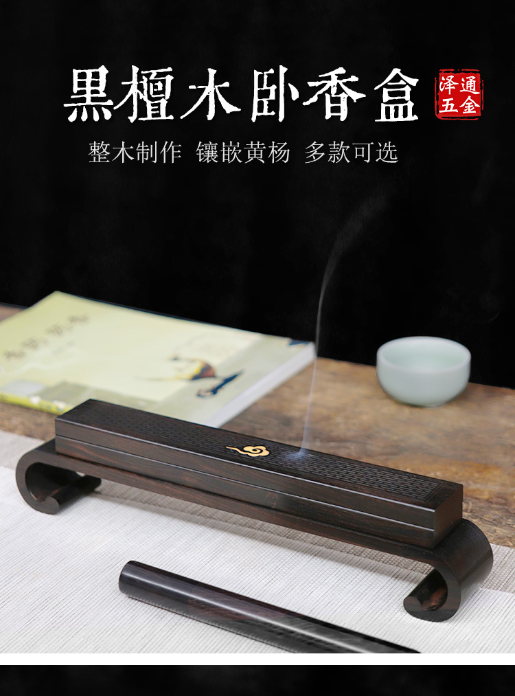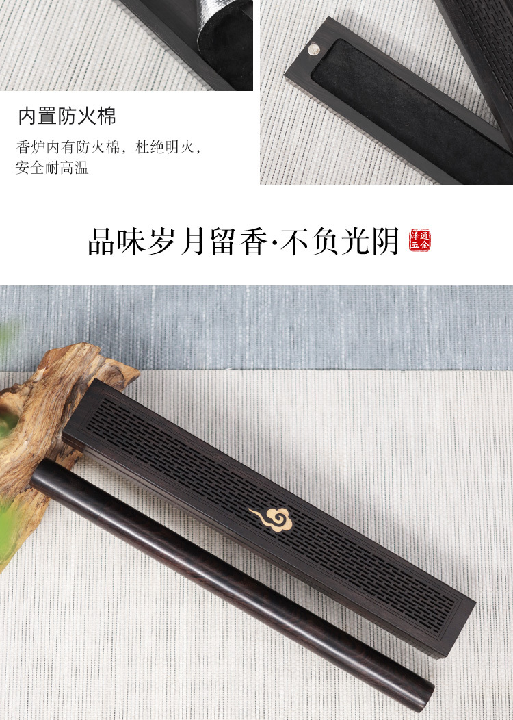 仕様 長型祥雲黒檀臥香箱,黒檀ベース,ロング黒檀平口香管,セット