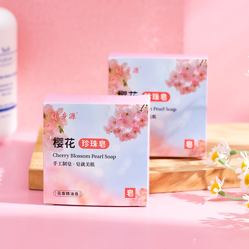 桜の香りのエッセンシャルオイル石鹸、正方形の桜パール石鹸、手作り石鹸、洗浄と保湿、卸売