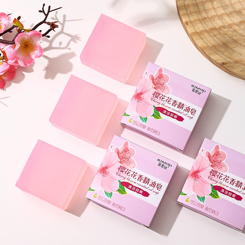 【思密糸】桜の花の香りの精油石鹸の四角い石鹸の手作り石鹸は清潔で潤いがあります。