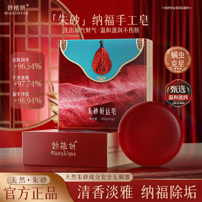 妙植妍纳福朱砂好运皂洁净肌肤持久留香沐浴香皂天然滋养美容润肤