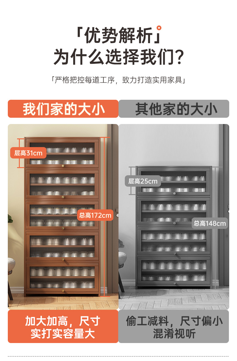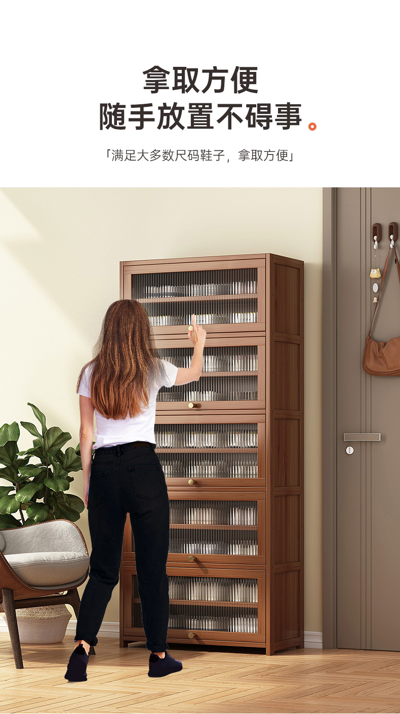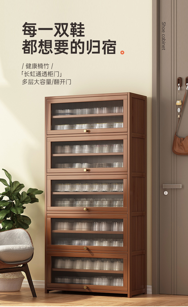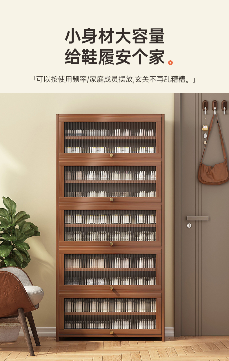 2025新型下駄箱家庭用玄関収納棚一体壁に寄りかかってドアの階層仕切り板にドアをつけて靴棚を収納する