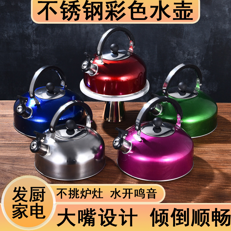 跨境专供不锈钢水壶鸣笛彩色壶whhistlingKettle半球形平底烧水壶