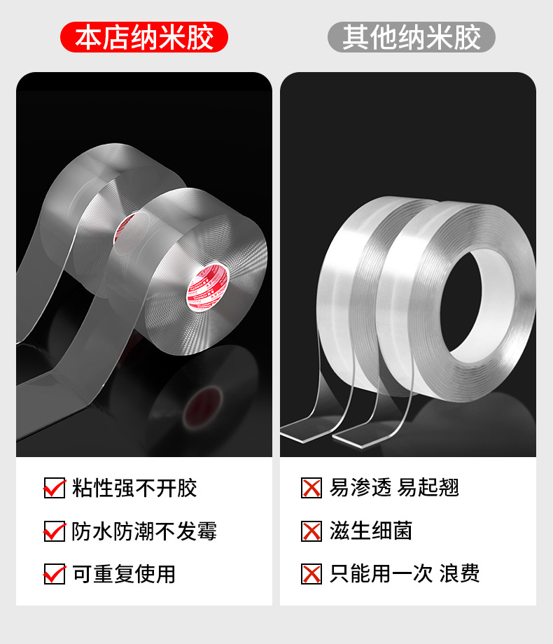 ナノ両面テープ無痕魔力接着強力透明フックアクリル泡防水高粘着テープ