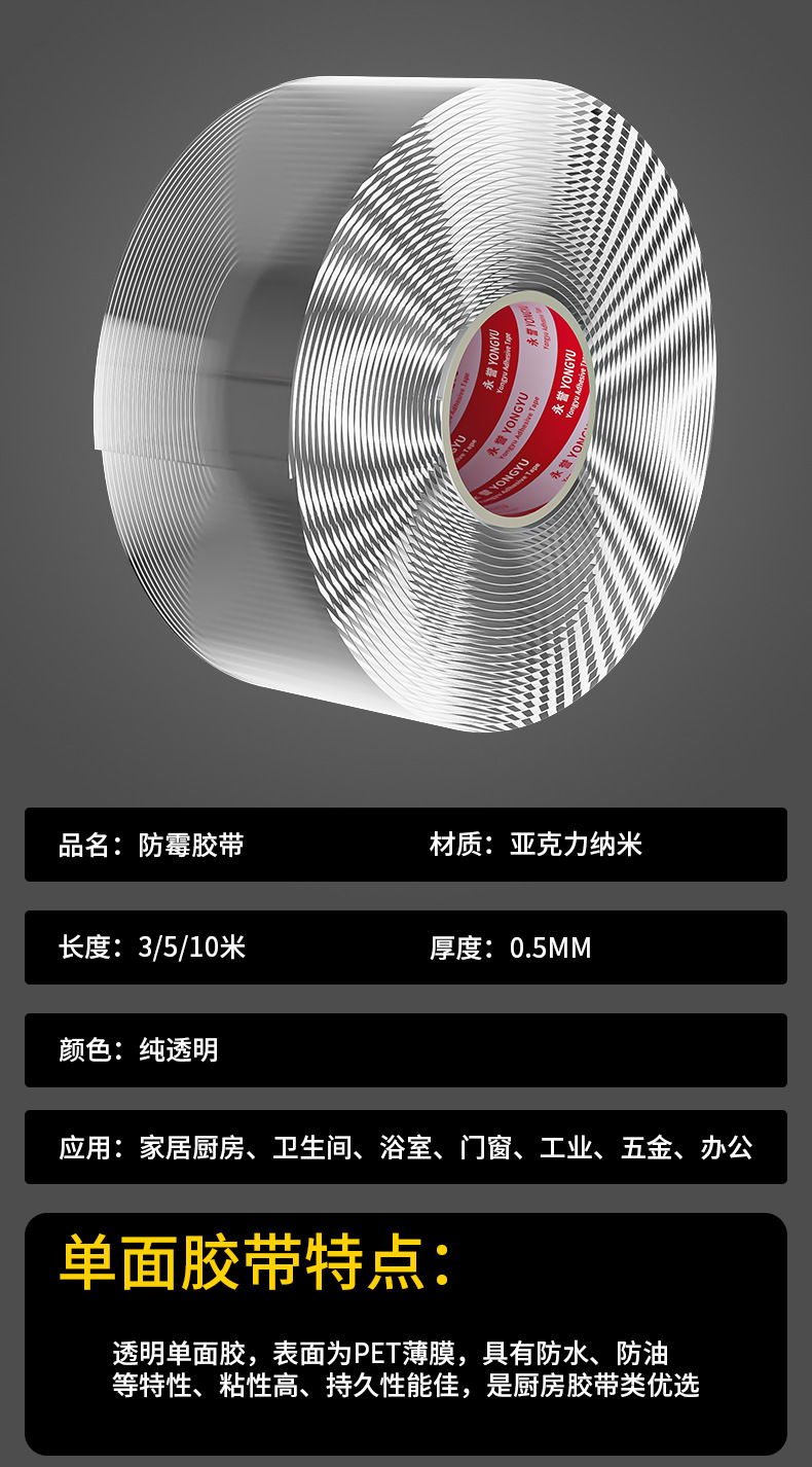 片面ナノテープキッチンコンロ強力無痕透明自己接着防湿カビ衝突防止美縫固定シール