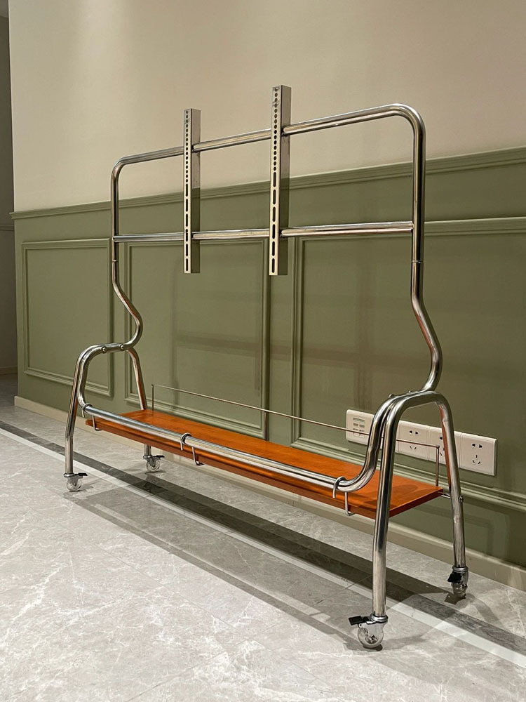 不锈钢电视支架金属带轮可移动客厅家用显示器支架挂架屏幕75寸内