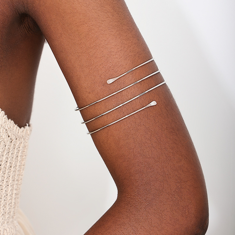 1件の気質はシンプルで、金属の4層の透かし彫りの螺旋は極めて簡単な風の女性の腕の輪の夏の旅行の休暇の金です。