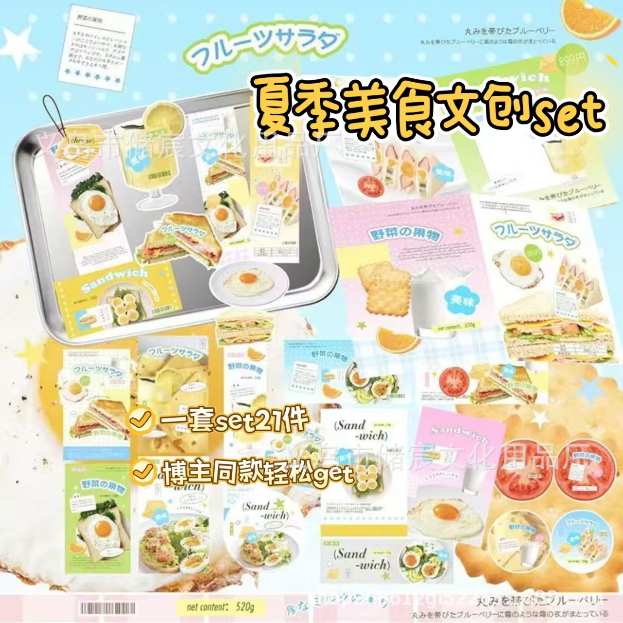 多巴胺卡通野餐美食三明治21件set覆膜文创素材出卡打包装饰卡片