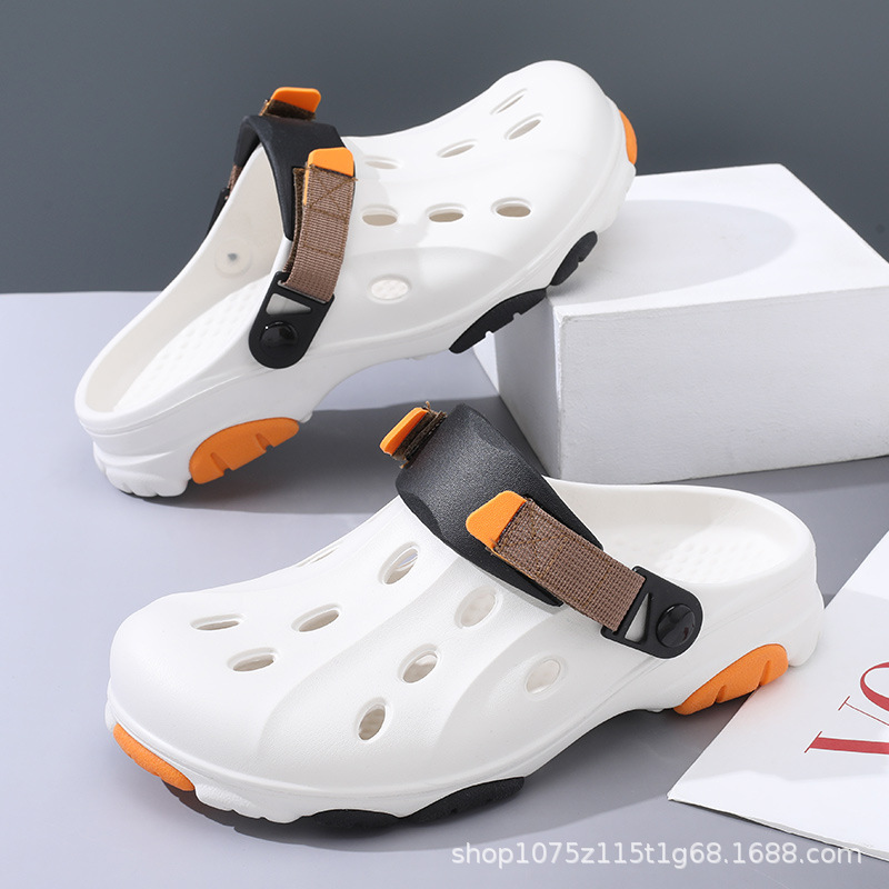 2024男性の純色の穴の靴の厚い底の滑り止めの耐摩耗性のファッションは簡単でカジュアルな屋外の砂浜のメーカーの頭を下げます。