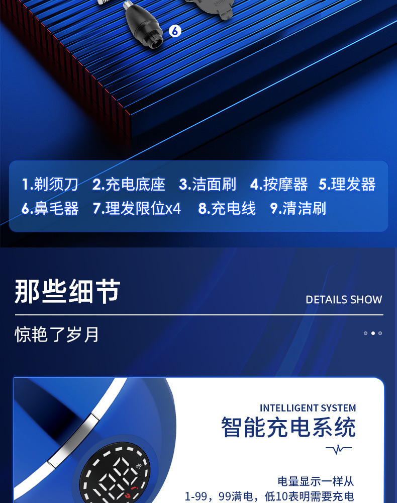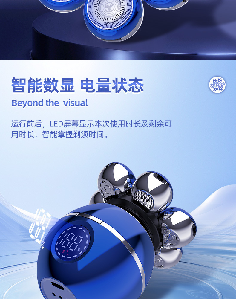 クロスボーダーの人気スマートデジタル表示髭剃り電気シェーバーUSB充電式全身水洗い多機能髭剃り
