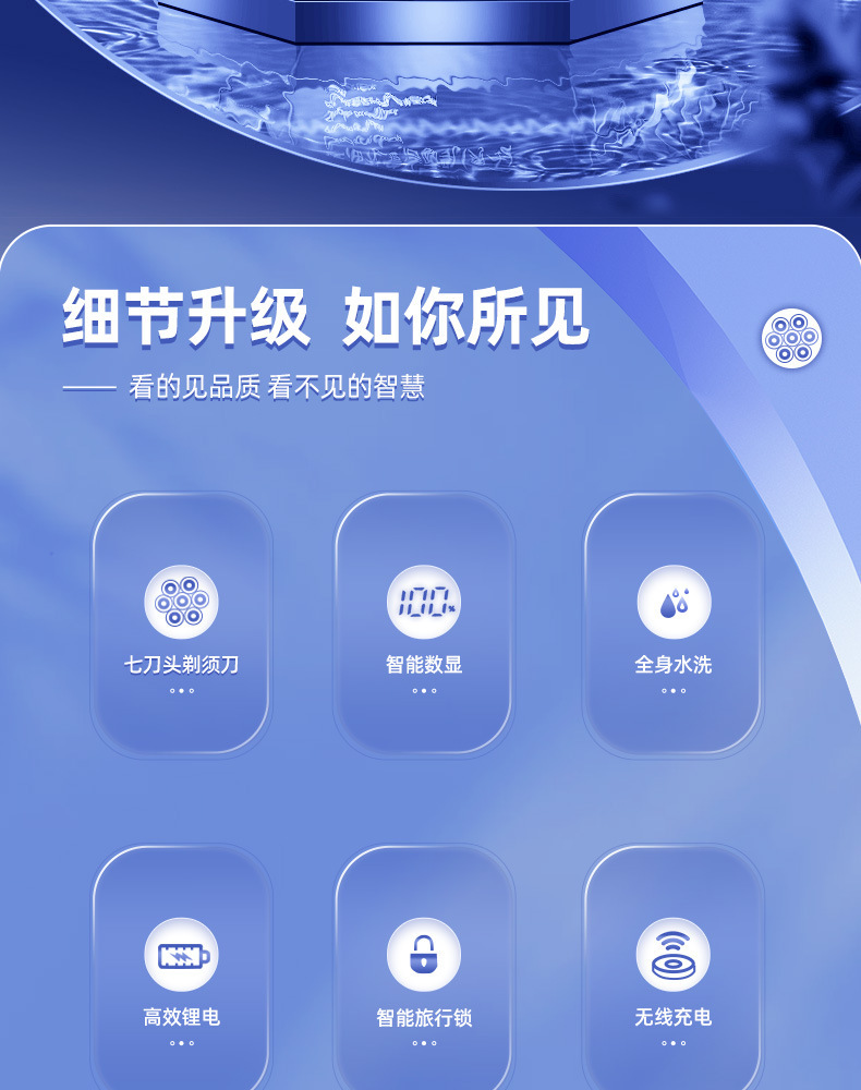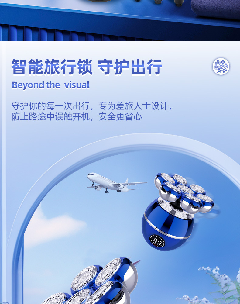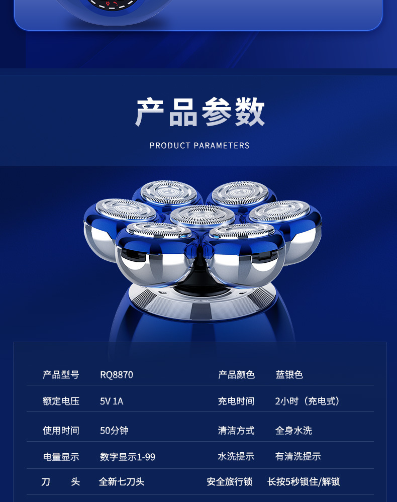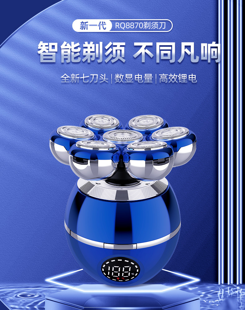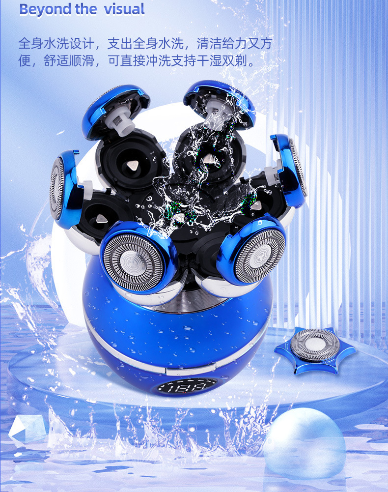 第9世代磁気吸引式7ヘッド電気シェーバー、7枚刃、全身水洗い可能、静音設計