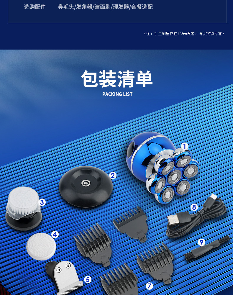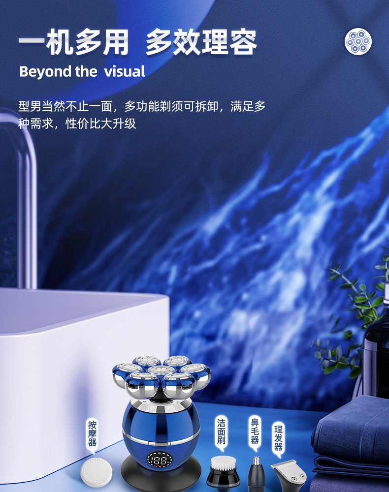 7ナイフヘッドかみそり電気充電スクレーパーメンズかみそりヘッドプロ理髪器多機能かみそり