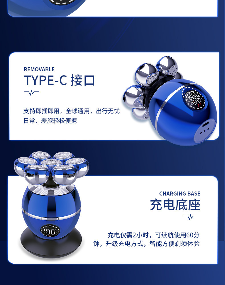 国境を越えた新型誘導式充電ヘッド理髪器男性剃髪ヘッド専門散髪多機能シェーバー