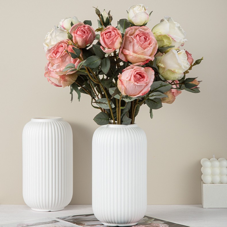 メーカー卸売ハイエンドクリーム模造セラミック花瓶花水耕フラワーアレンジメントシンプルモダンなプラスチック花瓶