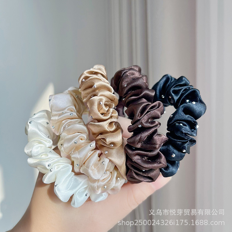 美拉德缎面烫钻小肠圈发圈女韩国高级感头绳扎头发橡皮筋百搭头饰