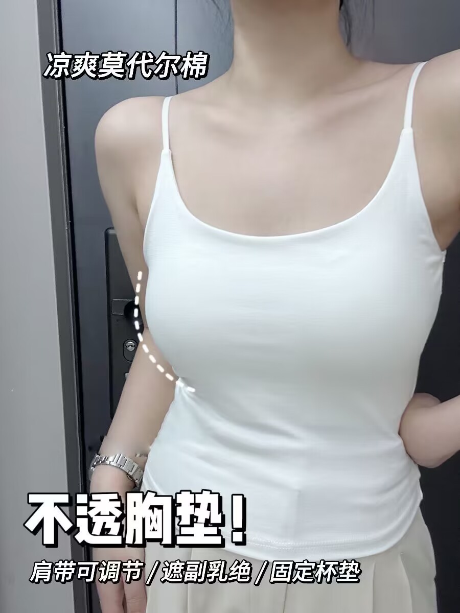 漫画の胸のキャミソールのベストの女性の夏の外着2025新型の中に胸のパッドが付いています。
