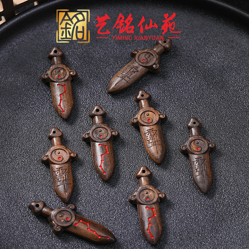 香木七星剣ペンダント 太紫薇檀香木太剣文玩珠飾り